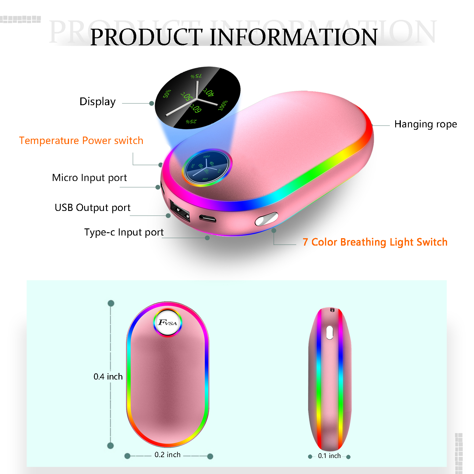 – Lnnovative Luminescence Electric Hand Warmer, adjustable 7 Colors Breathing Lights